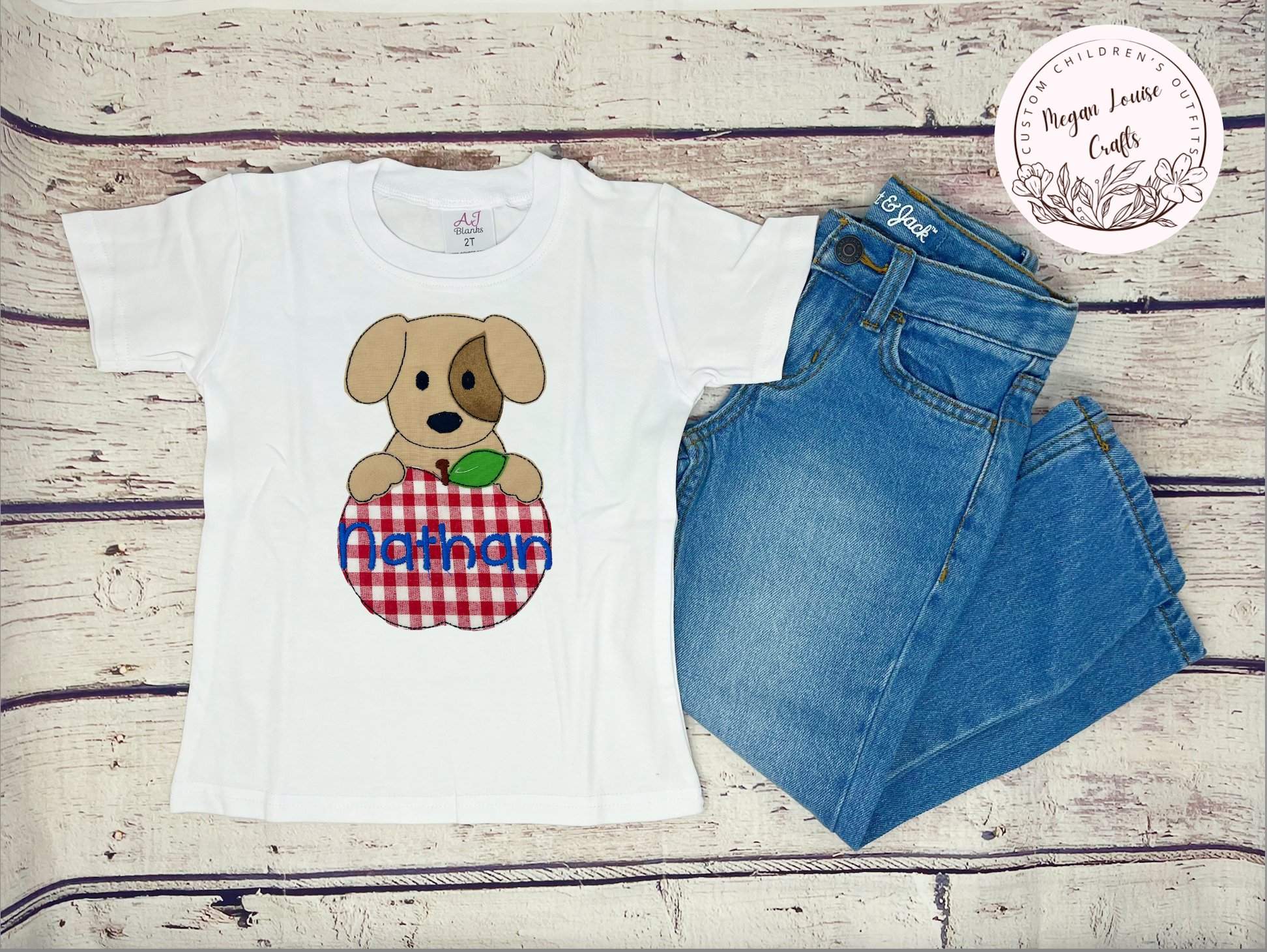 This is a custom embroidered shirt that is perfect for the first day of school! It is customized with your child's name and their grade level. You can choose to get it either in gray or white.