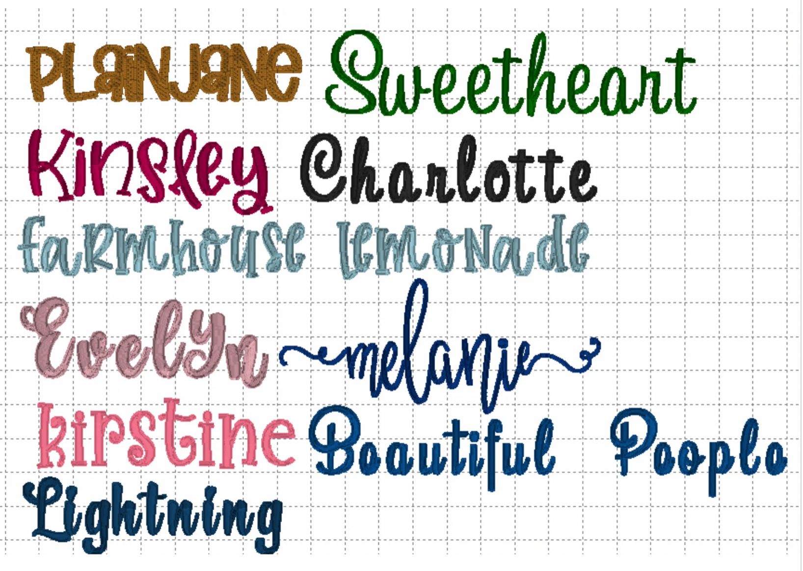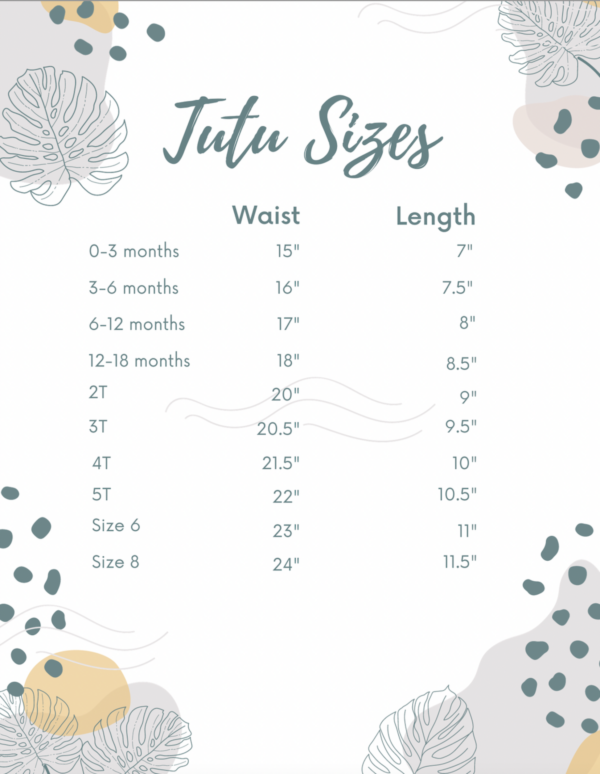 Size charts for the shirt and tutu are included in the last two images. You can also choose what font you want the name to be. The sample is melanie font.