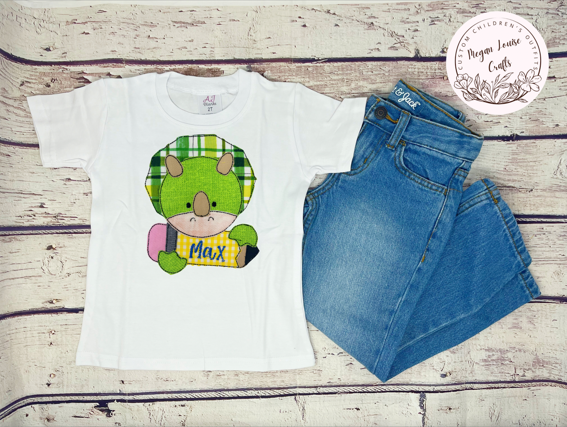 This is a custom embroidered shirt that is perfect for the first day of school! It is customized with your child's name and their grade level. You can choose to get it either in gray or white.
