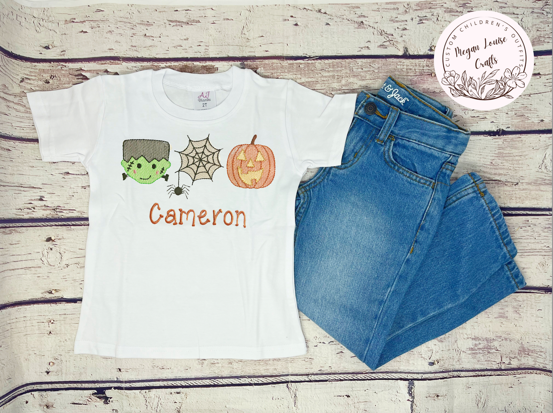 This is a custom embroidered shirt that is only $20 for the month of October! We usually sell our embroidered kids shirts for $28 each so this is a great deal! These are machine washable and each shirt has a soft backing to help it not agitate sensitive skin.