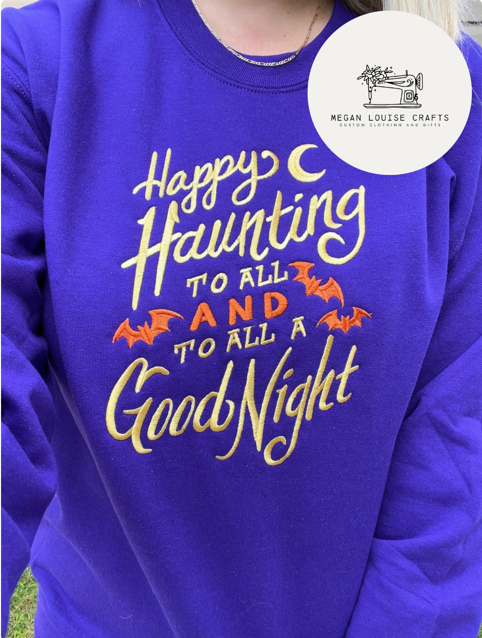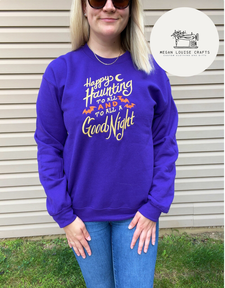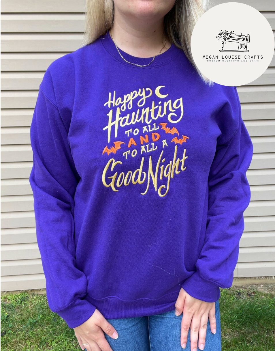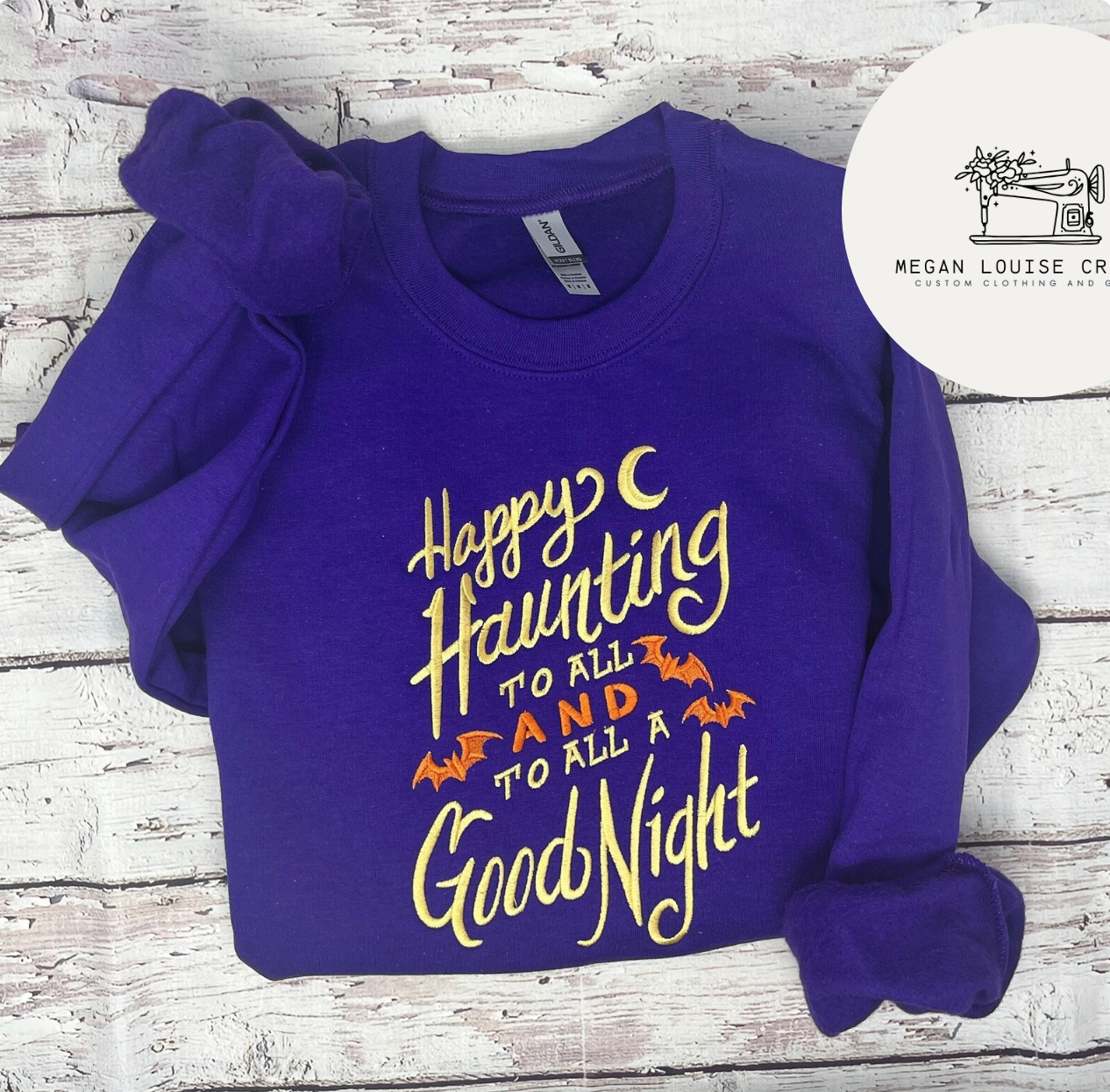 This embroidered sweatshirt is perfect to wear for spooky season! Made on a heavy duty cotton sweatshirt, this design is not only great to wear for the fall but it is made to last! Made on a sand colored Gildan sweatshirt and is machine washable.